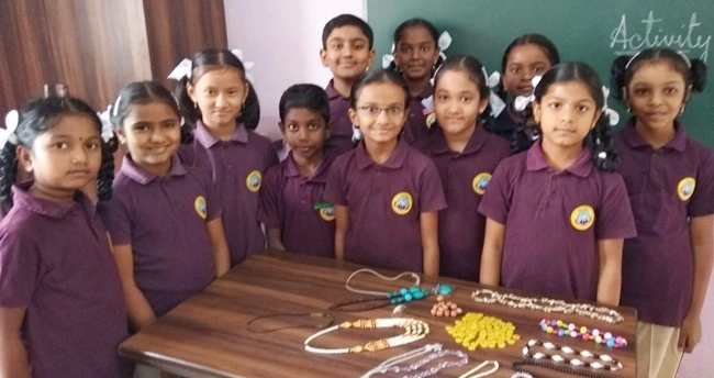 Beads activity in English class on "Jeannie's Amber Beads" lesson in Grade 4.
