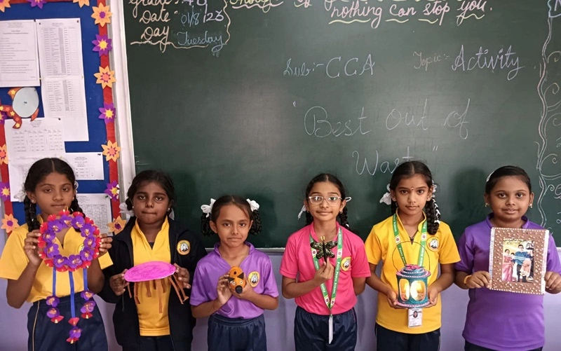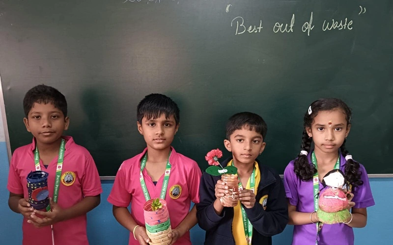 Best out of waste creative activity by students of grade 3 to 5