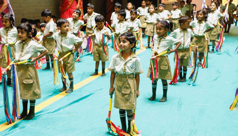 Our academic approach follows continuous and comprehensive evaluation, ensuring every child progresses at their own pace. The unique teaching methodology focuses on the 3H principle – Hand, Head, and Heart – promoting cognitive, emotional, and physical development in a balanced way.