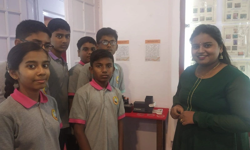 The students got the opportunity to see various collections of rare postal stamps and fascinating tools.