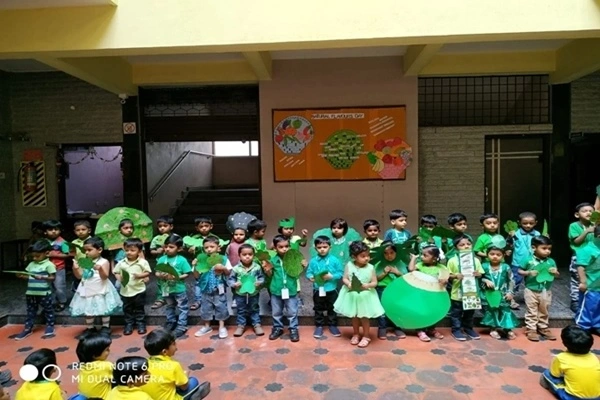 Green the colour of life. Green day was celebrated in nursery. where the child