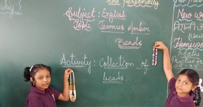Beads activity in English class on "Jeannie's Amber Beads" lesson in Grade 4.