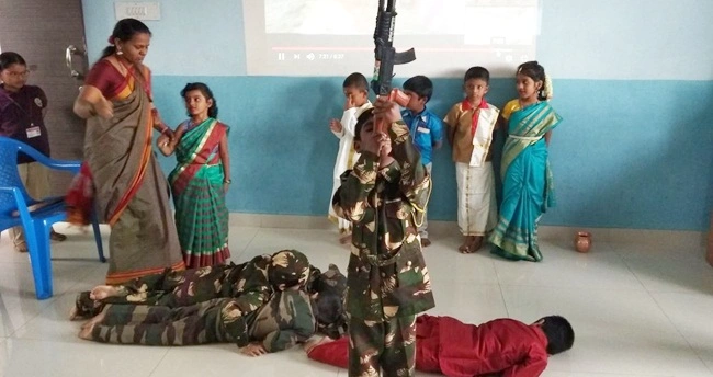 Wonderful skit presentation today by Grade 1 students on "Onake Obavva" in Assembly. Entire Assembly was arranged by the teacher in Kannada including the pledge for Grade 1.