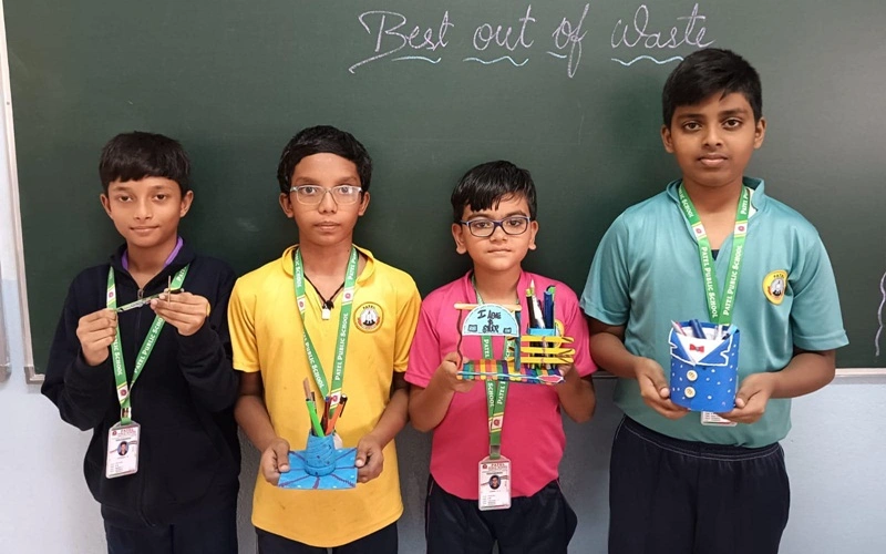 Best out of waste creative activity by students of grade 3 to 5